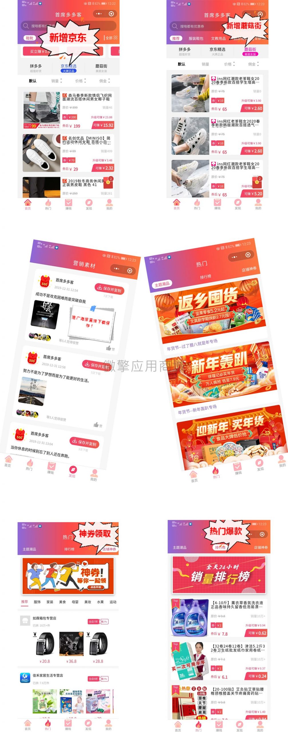 【首席赚钱】里不存在任何支付交易流程,所有的下单购物都直接在“拼多多”小程序里完成,系统程序本身只做调转以及购物佣金记录和计算,有再由平台发放佣金,所以就运营者本身无限担心小程序的审核问题,我们只是一个优惠商品的集合展示以及给用户发放佣金,用户也不用担心任何的支付或是购物安全,平台的运营可信度就能大大提高增加平台的运营优势,所有的优惠商品展示都是同拼多多官方的时时同步,不用人为手动的更新或是采集等操作,大大方便运营者的管理以及操作。